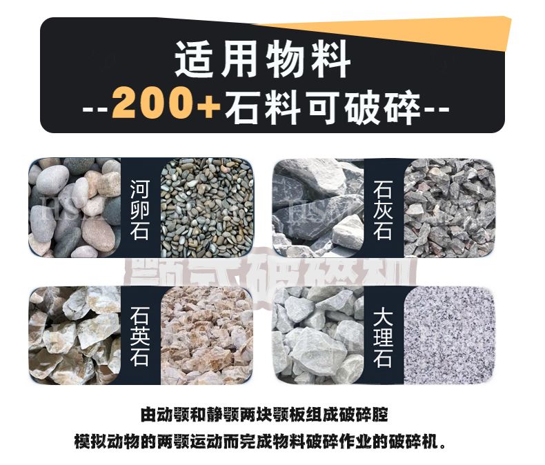 河卵石、方解石、石英、玻璃、大理石、鵝卵石、膨潤土、鐵礦石、青石、山石、水渣、石灰石、風(fēng)化砂、輝綠巖、花崗巖、玄武巖等物料的破碎制砂工作。